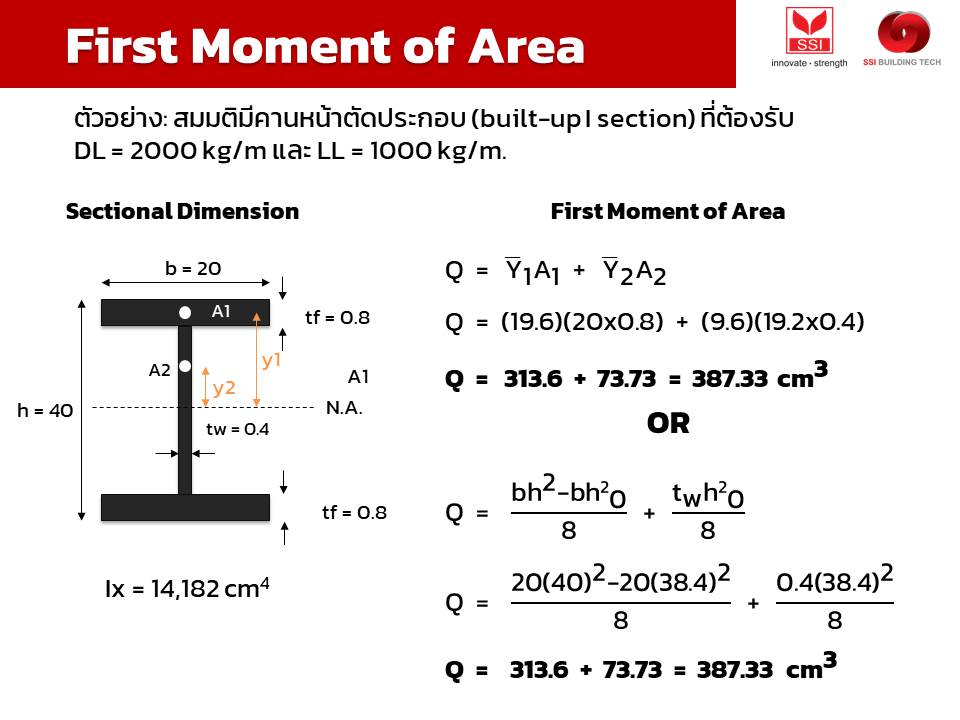 3. เมื่อได้หน้าตัดคานมา ก็จะทำให้เราสามารถคำนวณหาค่า Q หรือ first moment of area ได้แล้ว