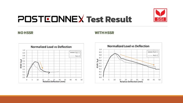 สิ่งที่ ACI ได้นำเสนอนี้ มีความสอดคล้องกับผลการทดสอบ PostConnex หรือ ระบบเสาท่อเหล็ก gravity column ที่ใช้ร่วมกับระบบพื้นคอนกรีตเทในที่ ซึ่ง บมจ. สหวิริยาสตีลอินดัสตรี ได้ทำการศึกษาร่วมกับอาจารย์จากมหาวิทยาลัยเทคโนโลยีพระจอมเกล้าธนบุรี ดร.เอกชัย อยู่ประเสริฐชัย ซึ่งท่านได้ทำการทดสอบในห้องปฏิบัติการทดสอบที่สถาบันเทคโนโลยีแห่งเอเชีย หรือ AIT โดยเป็นการทดสอบ ตัวอย่างจำลองพื้นคอนกรีตขนาด 1.50m x 1.50m x 18cm ที่มีเสาท่อเหล็กติดตั้งพร้อมชุดจุดต่อเสาท่อนล่างกับเสาท่อนบน ซึ่งประกอบไปด้วยแผ่นปิดหัวเสา (cap plate) และระบบจุดต่อ ที่มี triangular stiffener ที่ยึดเข้ากับ cap plate ด้วย high strength bolt โดยทำการทดสอบทั้งรูปแบบที่มี HSSR และ ไม่มี HSSR