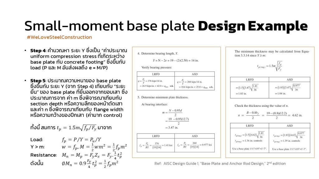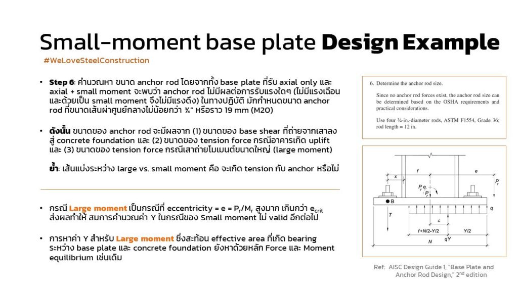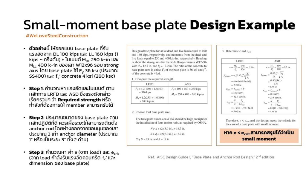 การออกแบบ Base plate และ Anchor ตอนที่ 5 ตอนสุดท้ายเป็นการนำเสนอตัวอย่างการคำนวณออกแบบ base plate ซึ่งรับ axial load และ small moment