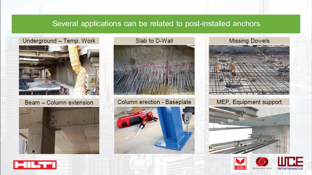 พุกที่ติดตั้งภายหลังนั้น เป็นอุปกรณ์ที่จำเป็นสำหรับงานซ่อมแซม เสริมกำลัง และต่อเติมโครงสร้าง โดยเฉพาะอย่างยิ่งการติดตั้งโครงสร้างเหล็กเข้ากับ existing structure เดิม โดยงานสัมมนาในหัวข้อนี้ ผู้บรรยายจะนำเสนอถึงแนวทางในการเลือกใช้ผลิตภัณฑ์ซึ่งมีอยู่หลากหลายประเภท มาตรการและขั้นตอนในการทำงานเพื่อควบคุมคุณภาพของการติดตั้งให้สามารถรับแรงได้ตามที่ออกแบบไว้อย่างปลอดภัย