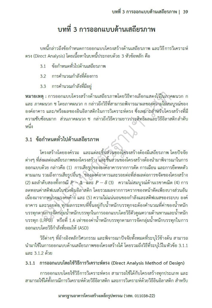 มาตรฐาน วสท. 011038-22 (ชื่อมาตรฐานมีการเพิ่มคำว่า “การออกแบบสำหรับ” เข้ามานิดนะครับ หลังจากที่ได้ผ่านการตรวจรีวิวจากคณะกรรมการของสภาวิศวกร) นี้ อ้างอิงมาตรฐาน AISC 360-16: Specification for Structural Steel Buildings โดยเป็นมาตรฐานที่รวมหลักปรัชญาในการออกแบบทั้ง ASD และ LRFD ไว้รวมกัน เรียกว่า Unified method (คือสามารถใช้สลับกันไปมาได้) และในรายละเอียดมีการปรับปรุงเปลี่ยนแปลงจากเดิมไปพอสมควร เช่น เรื่อง resistance factor ของค่าที่ขีดจำกัดบางค่า และที่สำคัญยิ่งที่ต้องกล่าวถึง คือ การออกแบบด้านเสถียรภาพ ซึ่งได้มีการ