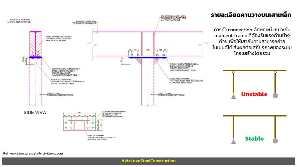 – เสาถ่าย moment ลงตอม่อ base plate with moment