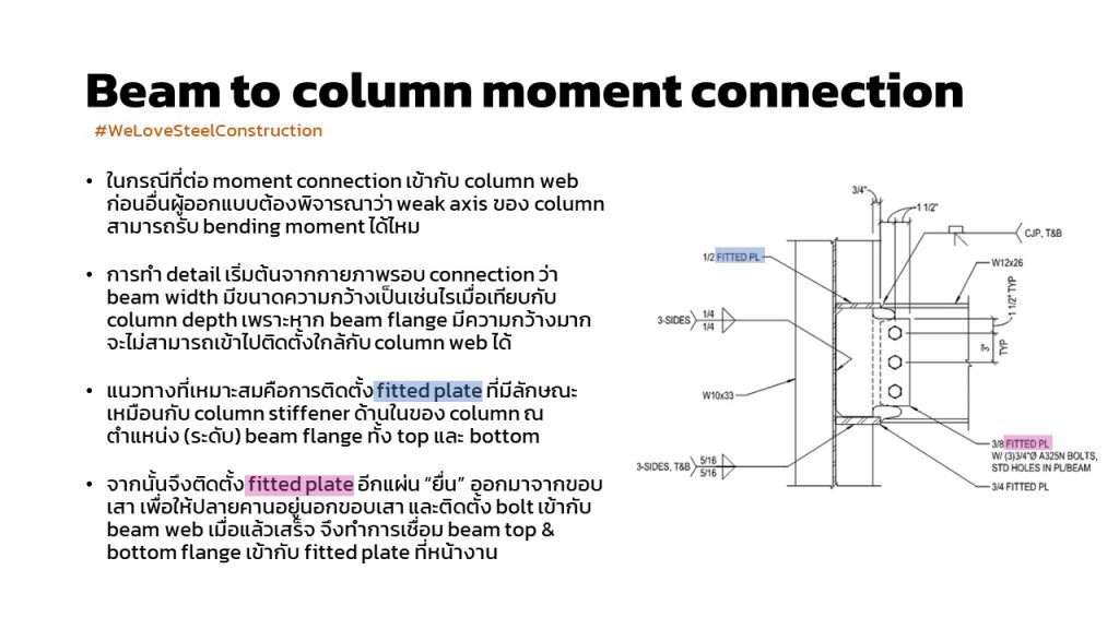 ด้านบนเป็น basic พื้นฐานที่ detailer ต้องเข้าใจ load path และ limit state ที่สะท้อนความเป็นไปได้ของการวิบัติที่อาจเกิดขึ้นกับโครงสร้างเหล็ก เพื่อให้ steel connection detail มี performance ตามที่คาดหวังไว้แบบไม่ต้องเดา ไม่ต้องเผื่อให้มากจนสิ้นเปลือง แต่ effective ด้วยต้นทุนที่จำกัด