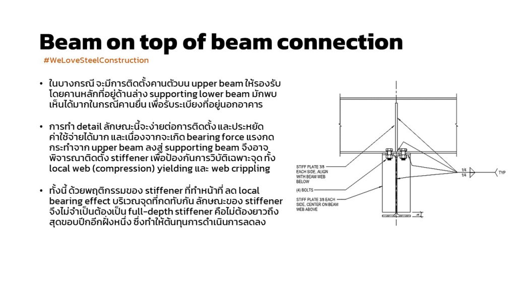 คานรองต่อคานหลักถ่ายแรงเฉือน beam-to-beam shear connection