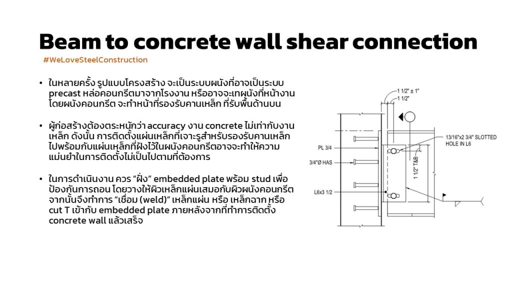 คานต่อเข้ากับผนังคอนกรีตที่ฝังแผ่นเหล็ก embedded-plate-to-concrete-wall connection