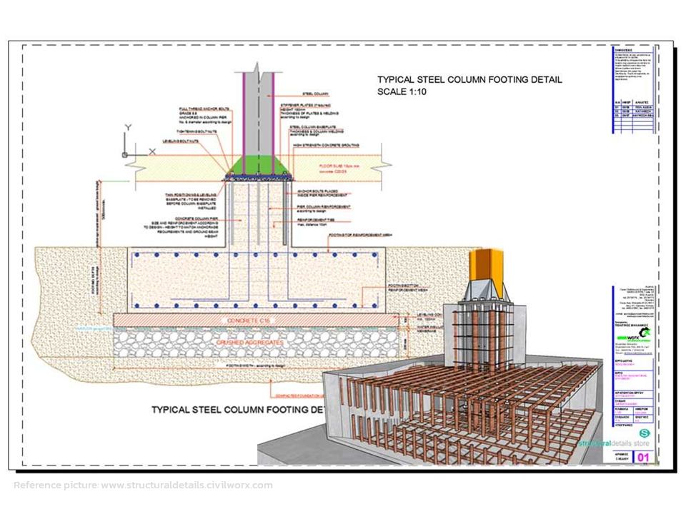 เสาที่มีแผ่นรองฐานวางบนคอนกรีตตอม่อ column base plate connection