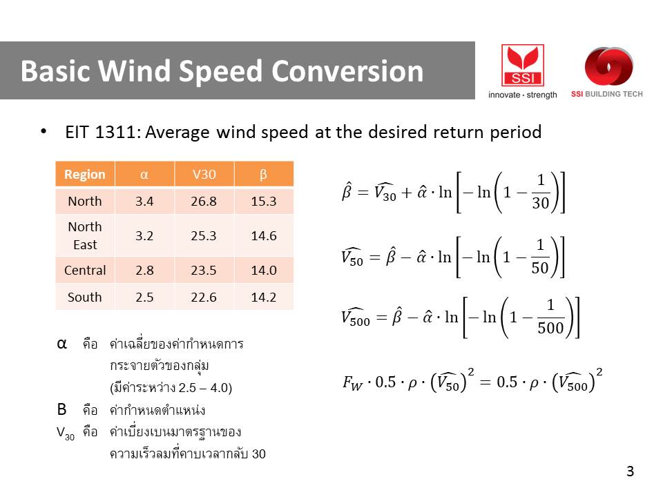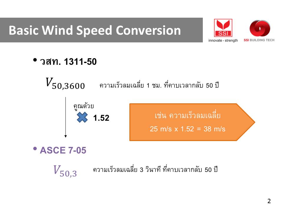 วิธีการ แปลงความเร็วลม ที่คาบเวลากลับต่าง ๆ ตาม มยผ. 1311