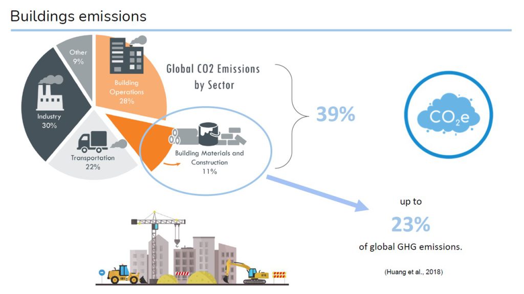 อาคารลดการปลดปล่อยคาร์บอน Low carbon buildings ณ ปัจจุบัน เราคงปฏิเสธไม่ได้ว่า สถานการณ์ของโลกเราขยับเข้าสู่ภาวะวิกฤต Greenland จากพื้นที่ที่เคยถูกประชดประชันว่า ไม่มีพื้นที่สีเขียวเพราะปกคลุมไปด้วยธารน้ำแข็ง กลับแปรเปลี่ยนเป็นดินแดนที่มีพื้นที่สีเขียว เพราะธารน้ำแข็งเกิดการละลาย จากอุณหภูมิของโลกที่เพิ่มสูงขึ้น … จากคำว่า global warming หรือภาษาไทยที่แปลว่า #ภาวะโลกร้อน ก็น่าจะถูกยกระดับเป็นคำว่า global boiling หรือ #ภาวะโลกเดือด จากอุณหภูมิในโลกที่เพิ่มสูงขึ้น การเพิ่มขึ้นของอุณหภูมิเฉลี่ยของโลกนั้น มาจากปัจจัยหลักคือการปลดปล่อย ก๊าซคาร์บอนไดออกไซด์ (CO2) และก๊าซอื่นๆ ที่ส่งผลต่อการทำลายชั้นบรรยากาศที่ช่วยปกป้องโลกเรา เช่น ก๊าซมีเธน (จากการหมัก จากมูลสัตว์ ฯลฯ) หรือ CFC ที่เรียกรวมๆ กันว่า ก๊าซเรือนกระจก หรือ Green House Gas (GHG) โดยได้มีการ “วัดปริมาณความรุนแรง” เป็นค่า #ก๊าซคาร์บอนไดออกไซด์เทียบเท่า หรือ CO2 equivalent (เขียนสั้นๆ ว่า CO2eq) ซึ่งเป็นปัจจัยที่หลักที่ส่งผลต่ออุณหภูมิที่เพิ่มสูงขึ้นของโลกเรา ที่เรียกว่า #GWP = Global Warming Potential งานก่อสร้างและการใช้สิ่งปลูกสร้าง ถือเป็น sector ที่ก่อให้เกิด #GWP ปริมาณมาก ตั้งแต่ #การเผา #การถลุง #การผลิต วัสดุที่ใช้ในการก่อสร้าง ไปจนกระทั่ง CO2eq จากการขนส่งทางบก ทางเรือ ทางอากาศ การใช้ไฟฟ้าในระหว่างการก่อสร้าง และการใช้อาคาร ซึ่งไฟฟ้าที่ผลิตมา ส่วนหนึ่งก็มาจาก fossil fuel เช่นโรงไฟฟ้าถ่านหิน เป็นต้น ที่ก่อให้เกิด CO2eq ในระหว่างการผลิตกระแสไฟฟ้า ไปจนกระทั่งกิจกรรมต่างๆ ในช่วงการใช้อาคาร เศษขยะครัวเรือน ไฟฟ้าเพื่อทำอาหาร ทำความร้อน ทำความเย็น ฯลฯ … ไปสุดทางเมื่ออาคารหรือสิ่งปลูกสร้างสิ้นอายุ จะนำเศษวัสดุที่ผ่านการทุบทำลาย ไปฝังกลบ หรือไปใช้ซ้ำ (reuse) หรือไปผลิตใช้ใหม่ (recycle) ก็ก่อให้เกิด CO2eq ไม่เท่ากัน การพิจารณา CO2eq ตลอดอายุการใช้งานอาคารตั้งแต่ วัสดุก่อสร้าง การก่อสร้าง การใช้อาคาร การทุบทำลาย การนำกลับไปใช้ใหม่นี้ เรียกว่า Life Cycle Assessment หรือ LCA และเพื่อไม่ให้เกิดการนับซ้ำ จึงมีการกำหนดวิธีการนับ CO2eq ออกเป็นส่วน เรียกว่า #SCOPE โดยมีทั้งสิ้น 3 SCOPE คือ SCOPE 1: การปลดปล่อยโดยมือของเรา ของหน่วยงานเราเอง เราผลิตเหล็ก CO2eq ที่ออกมาจากกระบวนการผลิต เราก่อสร้าง CO2eq ที่ออกมาจากเครื่องจักรในงานก่อสร้างที่ใช้น้ำมันดีเซล นับรวมในส่วนนี้ SCOPE 2: เป็นการปลดปล่อย CO2eq จากไฟฟ้าที่เราซื้อจากการไฟฟ้า แน่นอนว่า ไฟฟ้าแต่ละประเทศมี CO2eq SCOPE 2 ที่ไม่เท่ากัน เพราะวิธีการบริหารจัดการไม่เหมือนกันSCOPE 3: ครอบคลุมการปลดปล่อย CO2eq การกิจกรรมอื่นๆ เช่น การขนส่ง การปลดปล่อยของ outsource ผู้รับจ้างช