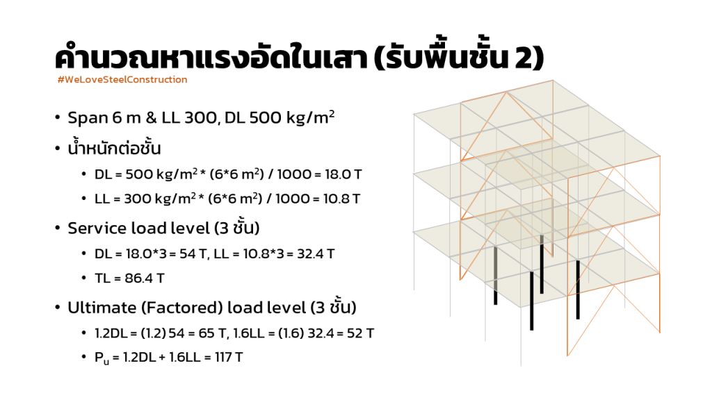 วิธีการคำนวณ สามารถดำเนินการได้ไม่ยาก โดยหลักการต้องออกแบบให้กำลังมากกว่าแรงที่กระทำ โดยพิจารณาความเสี่ยงที่อาจอ้างอิง ASD หรือ LRFD ก็สามารถทำได้ทั้งสิ้นนะครับ กำลังรับแรง โดยหลักๆ ขึ้นกับ 2 ปัจจัยครับคือ (1) วัสดุ material กำลังรับแรงที่จุดคราก และ Elastic modulus โดยเฉพาะอย่างยิ่งกำลังรับแรงอัดที่เกี่ยวข้องกับ stiffness (2) ขนาดมิติ ที่ไปเกี่ยวข้องกับ พื้นที่หน้าตัด รัศมีไจเรชั่น โมเมนต์เฉื่อย ความหนา ฯลฯ
