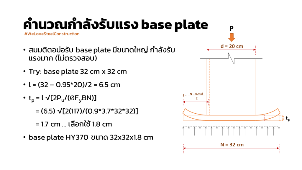การคำนวณ ความหนา แผ่นเหล็กรองฐานเสา (Base Plate)
