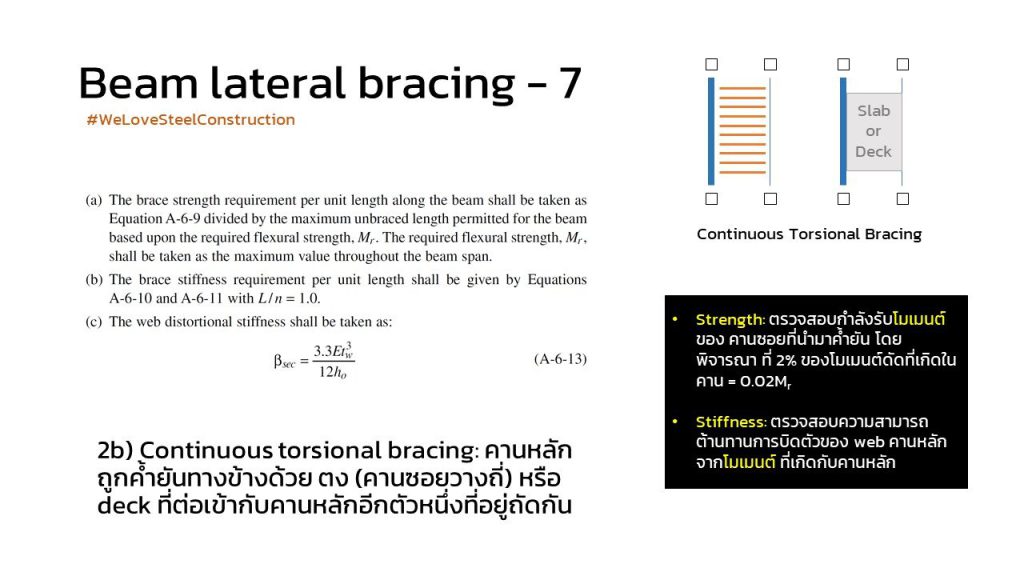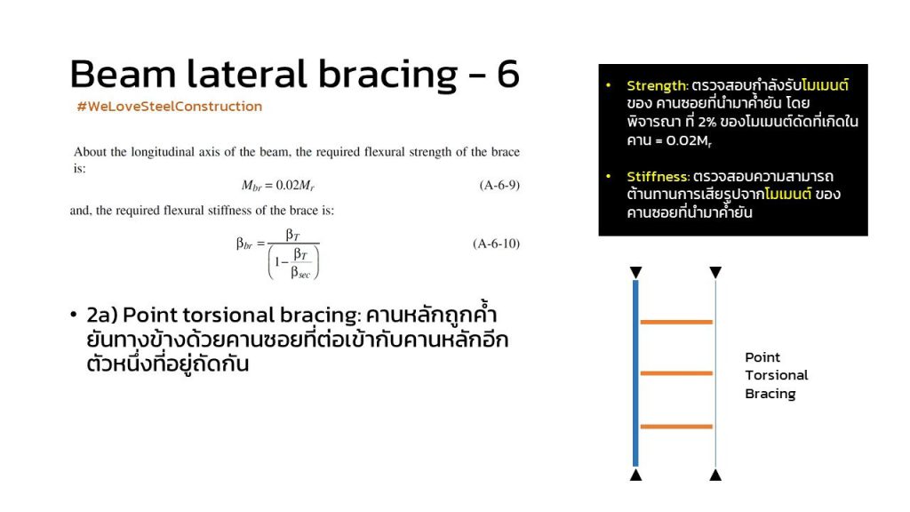 และเช่นเดียวกับ beam lateral bracing นะครับ … beam torsional bracing ก็ต้อง satisfy ทั้งเงื่อนไขของ (1) strength (2) stiffness เช่นเดียวกัน