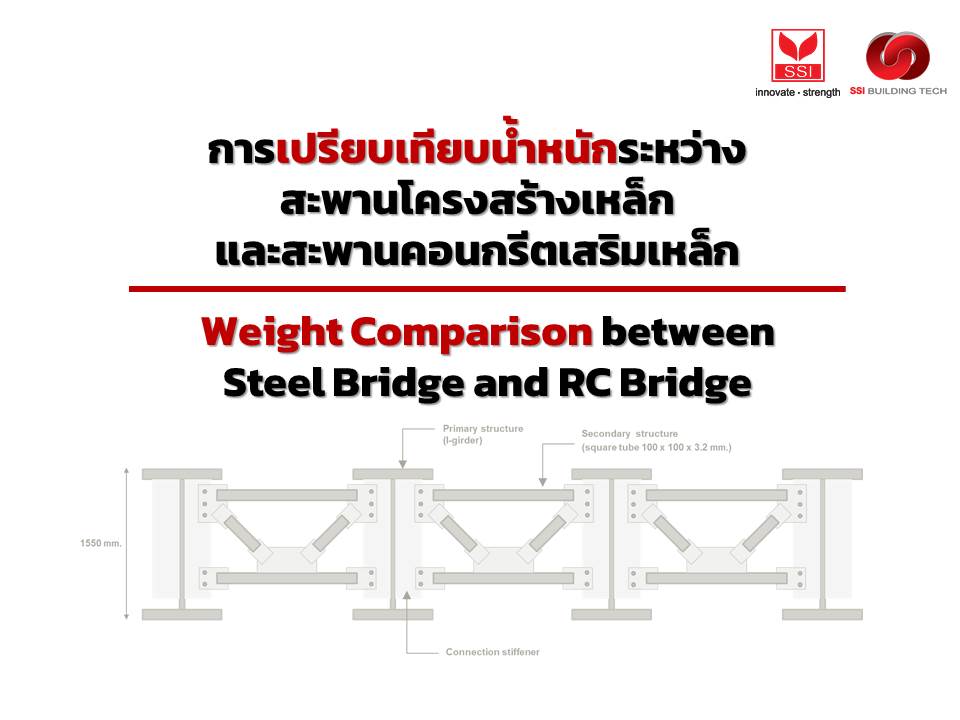 สะพานโครงสร้างเหล็ก กับน้ำหนักลงตอม่อที่หายไป (การเปรียบเทียบน้ำหนักของสะพานโครงสร้างเหล็ก และสะพานโครงสร้างคอนกรีตเสริมเหล็ก)
