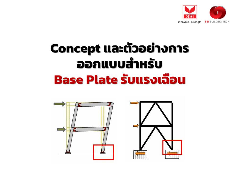 ในอาคารทั่วๆไป เช่น บ้านหรือสำนักงานต่างๆ เราจะพิจารณาแรงกด P (Axial Force) ที่ถ่ายลงมาจากเสาไปยัง Base Plate แล้วจึงเอาไปคำนวณหาความหนาของ Base Plate และคำนวณค่า Strength ของคอนกรีต แต่ในอาคารประเภทโรงงานหรือโกดังเก็บของที่มีช่องเปิดแล้วแรงดันลมภายในที่เป็นแรง uplift จะส่งผลให้เกิดแรงดึงขึ้นที่ column base plate ซึ่งทำให้ต้องพิจารณาและออกแบบด้วยวิธีที่ต่างกับส่วนที่รับแรงอัดเพียงอย่างเดียว