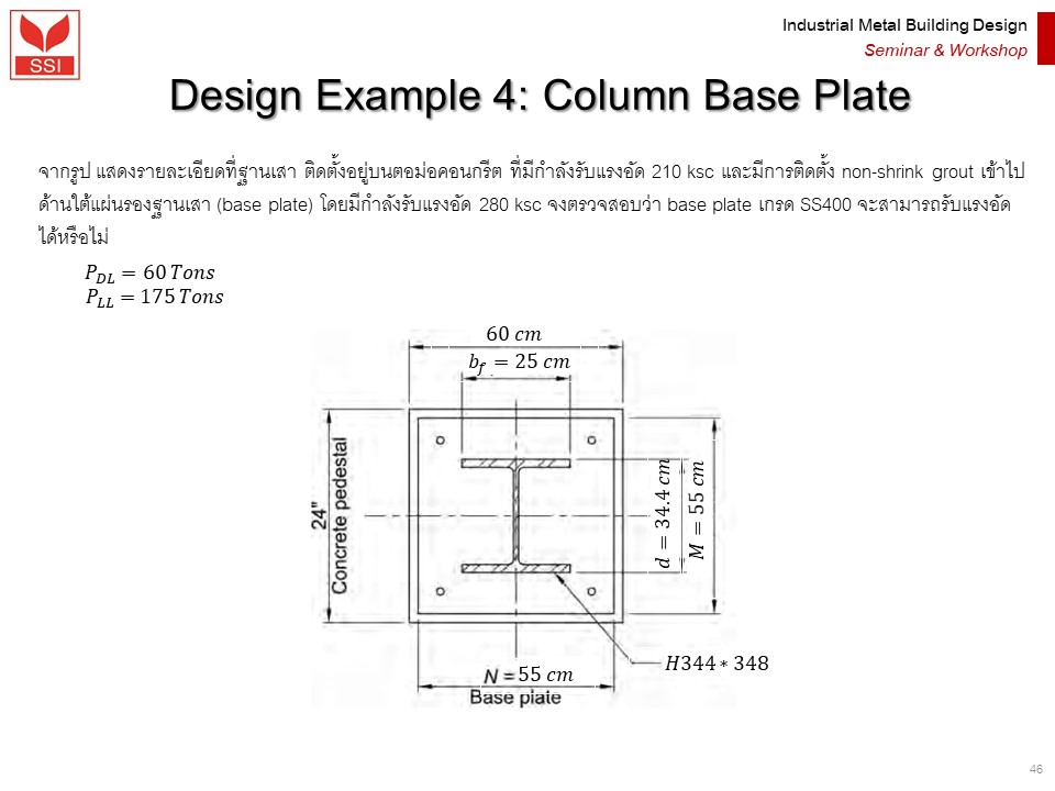 ตัวอย่างการคำนวณออกแบบ Base plate (Axial only) Base plate – Design example (Axial only) ตัวอย่างการคำนวณออกแบบ Base plate