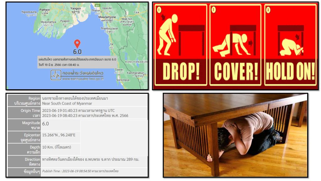 Attention, everyone! Earthquakes can occur at any time and in any location. A recent earthquake took place near the South Coast of Myanmar, with coordinates 15.266°N, 96.248°E. It had a magnitude of 6.0 and originated at a depth of 10 km. The epicenter was approximately 289 km southwest of Phop Phra District, Tak Province, Thailand.