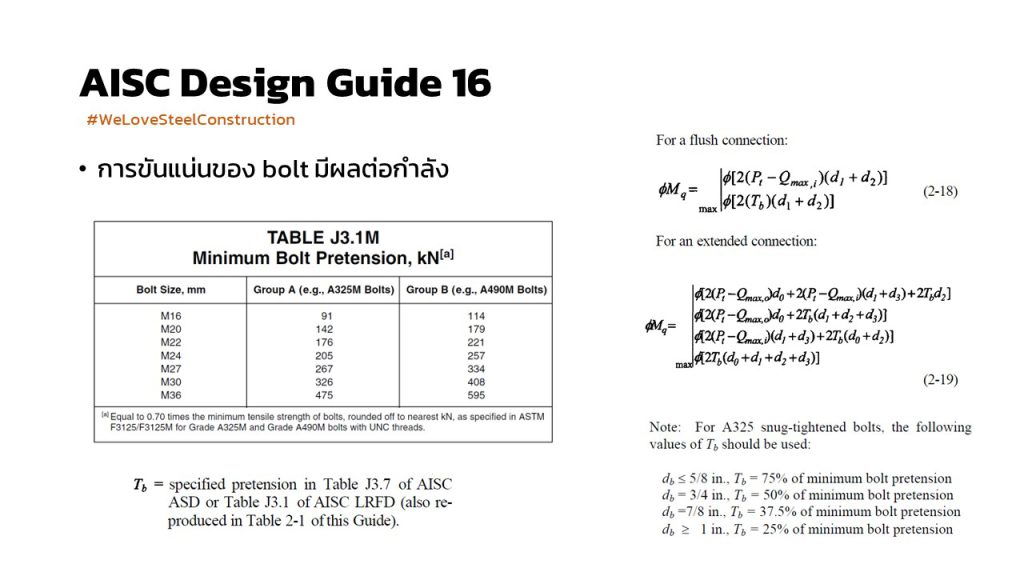 ดูรายละเอียดการคำนวณได้จาก Design guide ทั้ง 2 ฉบับ หรือดูสมการสรุปตามที่นำเสนอใน Post ได้เลยครับ