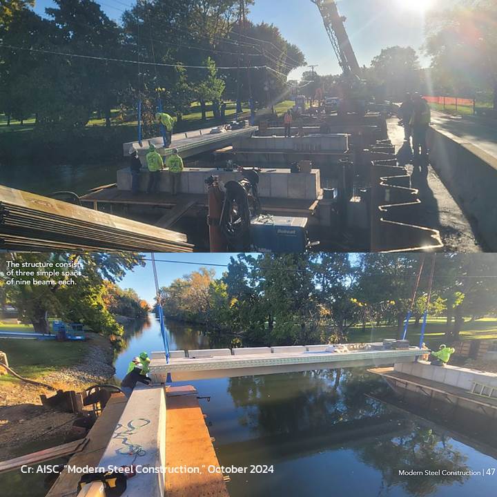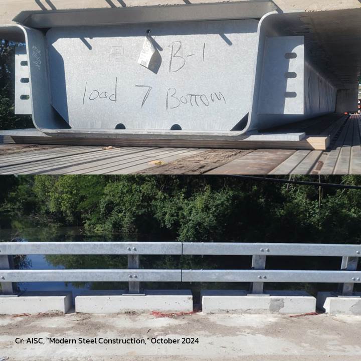 แต่อย่างไรก็ดี สะพานแห่งนี้ มีความยาวทั้งสิ้น 32 m จึงได้แบ่ง U beam ออกเป็น 2 ช่วง ต่อเข้าด้วยกันด้วยสลักเกลียว (bolt) เพื่ออำนวยให้สามารถชุบลงบ่อสังกะสีร้อน และขนส่งด้วยรถบรรทุกลากขนาดปกติ ตลอดจนสามารถดำเนินการที่หน้างานได้อย่างรวดเร็ว ทั้งนี้ งานก่อสร้างได้แบ่งออกเป็น 2 เฟส เพื่อให้ไม่กระทบกับการจราจรปกติ