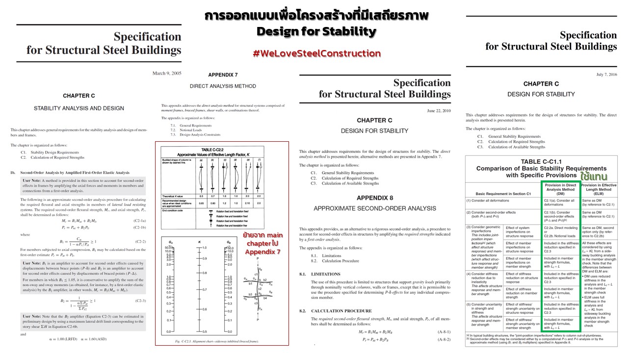 หลักการออกแบบเพื่อเสถียรภาพ การเปลี่ยนผ่านต้องใช้เวลา อาจนานเป็นหลัก generation ประเด็นนี้ American Institute of Steel Construction หรือ AISC เคยประสบพบเจอมาหลายรอบแล้ว หลักๆ ช่วงราวปลายยุค 90 ที่มีการเปลี่ยนผ่านวิธีการคำนวณ
