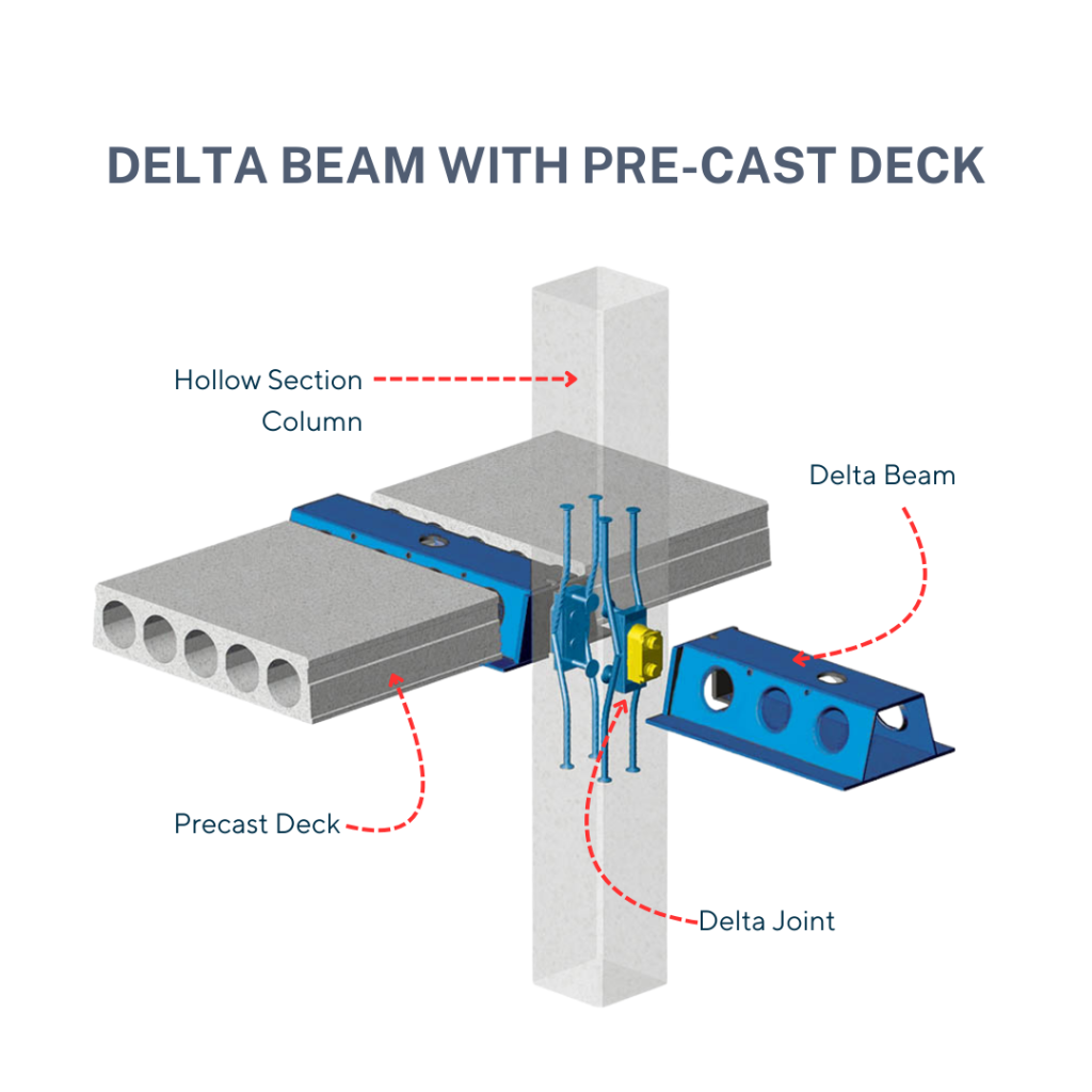 Delta Beam เป็นนวัตกรรมการก่อสร้างด้วยเหล็กจากบริษัท PEIKKO ที่มีคุณสมบัติพิเศษในการซ่อนคานทั้งหมดไปกับความหนาของแผ่นพื้นคอนกรีต ซึ่งช่วยแก้ปัญหาเรื่องความสูงต่ำ (Clearance Height) ในระบบโครงสร้างนี้ได้อย่างมีประสิทธิภาพ