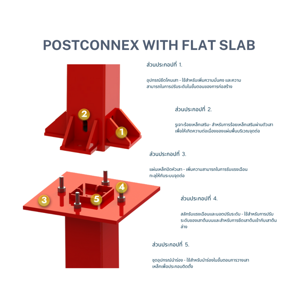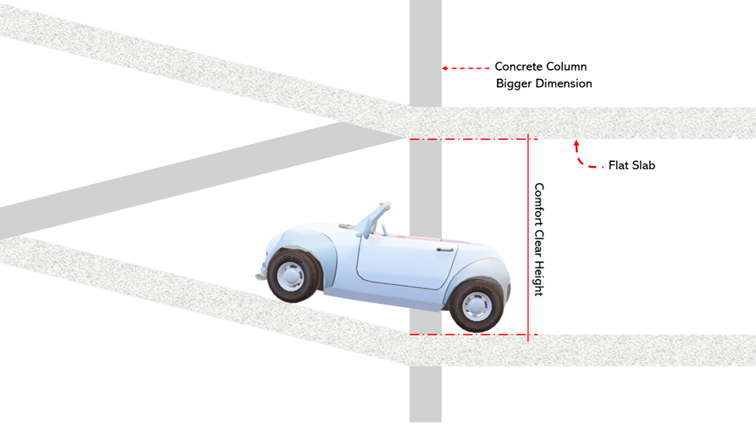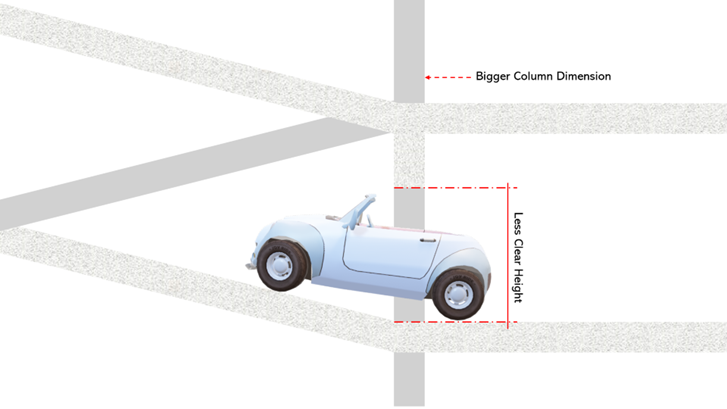 นอกจากนี้ การใช้เสาคอนกรีตเสริมเหล็กในการก่อสร้างทำให้ขนาดของเสามีขนาดใหญ่ ซึ่งส่งผลต่อการใช้งานของผู้ใช้อาคาร เนื่องจากทำให้การเลี้ยว ถอยเข้า และออกจากช่องจอดรถมีความยากลำบากมากขึ้น อย่างไรก็ตาม หากจำเป็นต้องใช้โครงสร้างรูปแบบนี้ เราสามารถแก้ไขจุดอ่อนได้บางส่วนด้วยเทคโนโลยีจาก SSI ชื่อว่า POST CONNEX ซึ่งใช้เสาท่อเหล็กร่วมกับระบบโครงสร้างพื้นไร้คาน ทำให้ลดขนาดของเสาและช่วยลดเวลาการก่อสร้างเสาได้บ้าง ดังนั้น การเลือกใช้ระบบโครงสร้างพื้นไร้คาน ควรพิจารณาถึงข้อดีและข้อเสียอย่างละเอียด เพื่อให้สามารถเลือกใช้เทคโนโลยีและวิธีการที่เหมาะสมที่สุดสำหรับโครงการของคุณ