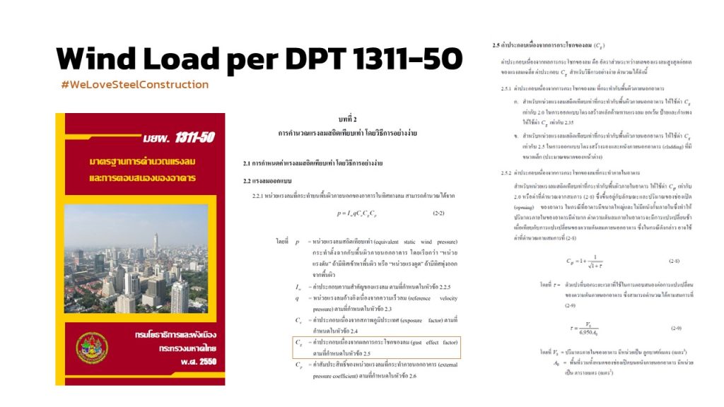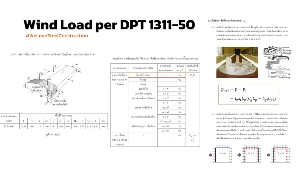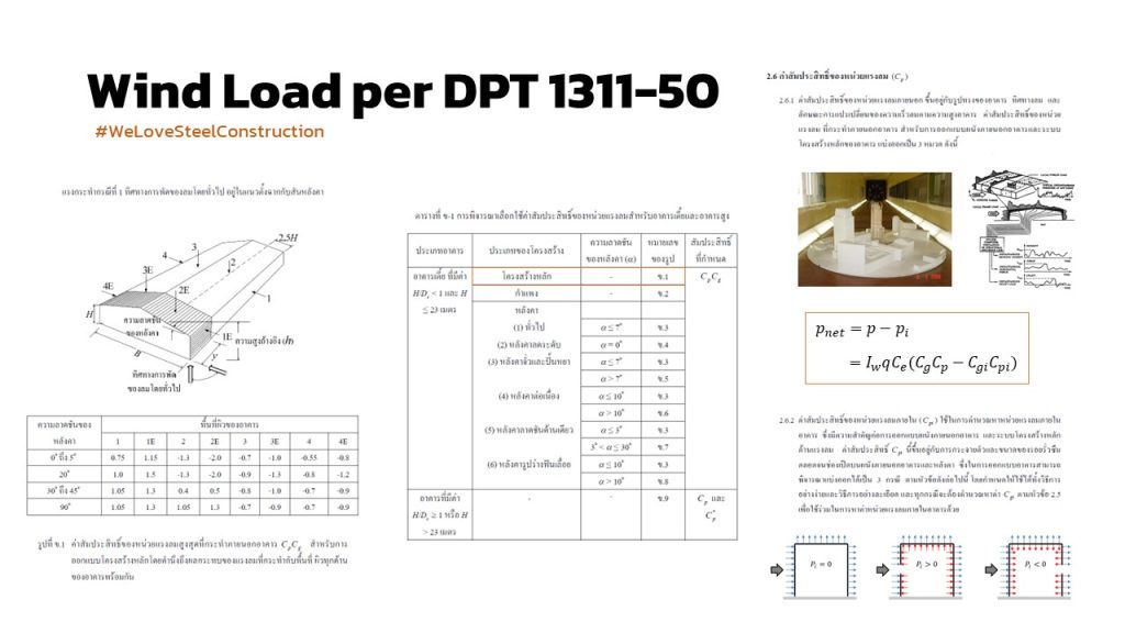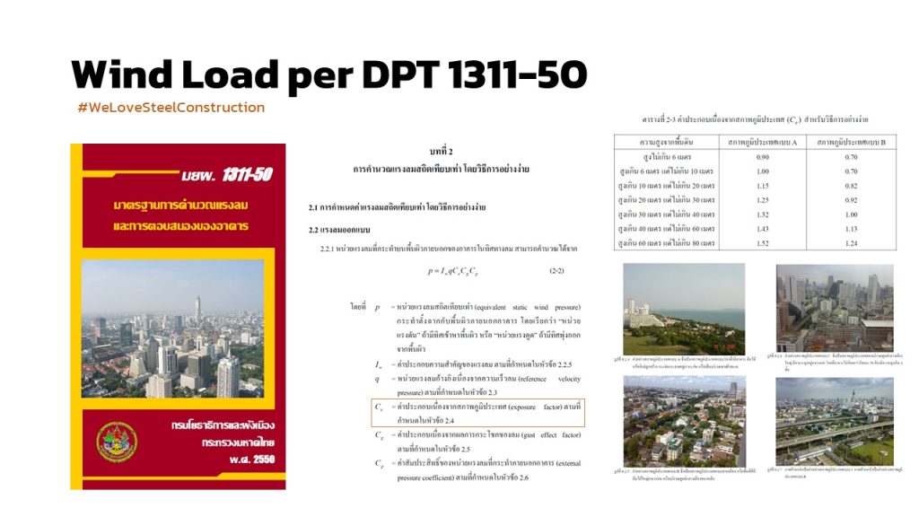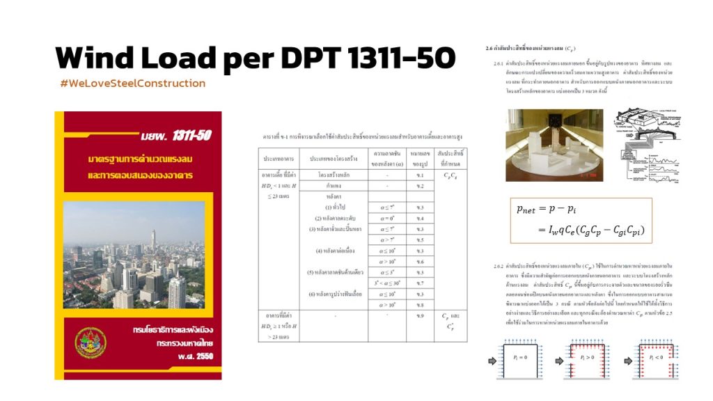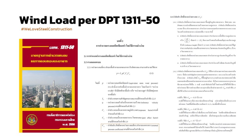 แต่เราคงต้องเดินหน้าต่อไป เท่าที่เราพอจะทำได้ เพราะ สัมประสิทธิ์โดยเฉพาะอย่างยิ่ง Cp หรือ pressure coefficient ที่เราต้องทำการทดสอบด้วยอุโมงค์ลมนั้น มันแปรเปลี่ยนไปตามลักษณะอาคาร shape / form / dimension ที่หลากหลาย ซึ่งแน่นอนว่า recent code รุ่นใหม่ๆ จะมีค่า Cp สำหรับอาคารหลากหลายประเภทมากกว่า code รุ่นเก่าๆ เราจึงต้อง ศึกษา code รุ่นใหม่ๆ … จึงมีความจำเป็นที่เราต้องปรับวิธีการมอง ปรับ concept ของเราให้ทัน code รุ่นใหม่ๆ ด้วย